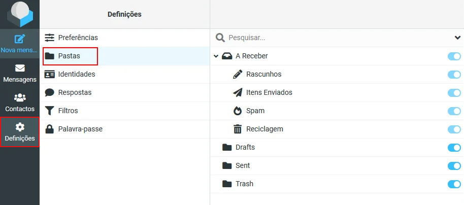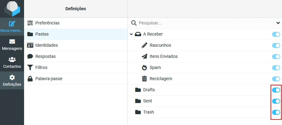 Pronto! Após concluir os passos neste artigo, as pastas que foram selecionadas ficam disponíveis através do Roundcube.