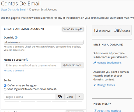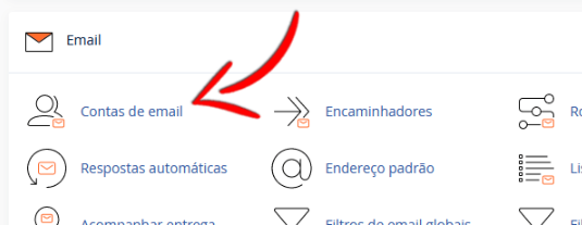 1) Em seu cPanel, na seção “Email” acesse a opção “Contas de email”: