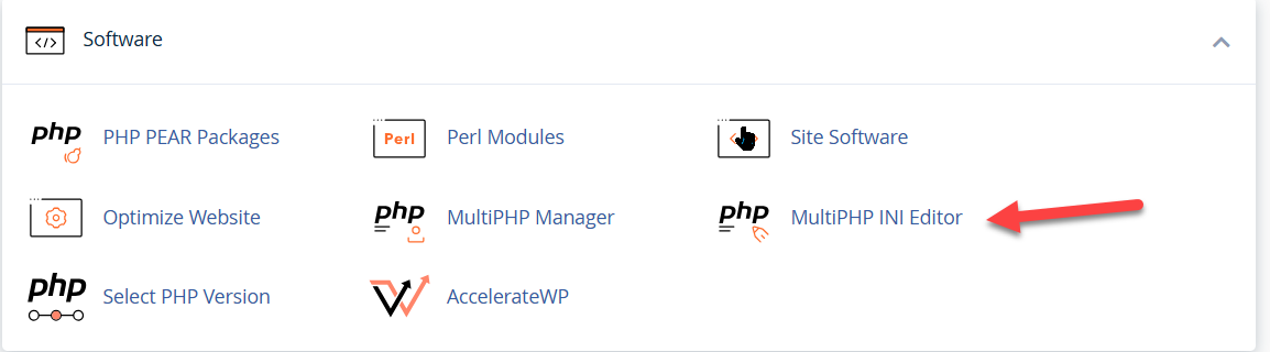 1 - Ir até o a opção "MultiPHP INI Editor" na aba software